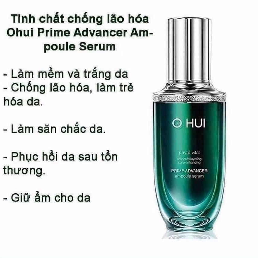 ►Tinh chất chống lão hóa Ohui Prime Advancer Ampoule Serum có tác dụng chống lão hóa, chống nhăn, giúp da săn chắc căng bóng trắng sáng mịn màng như da em bé.