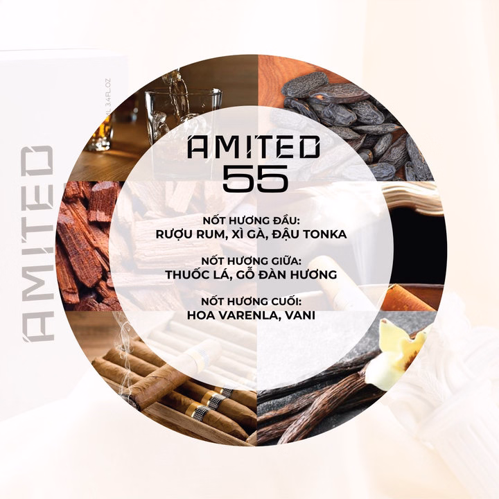 Nước hoa Unisex Amited 55 – Cá tính, Mạnh Mẽ, Cuốn Hút, Sâu Lắng, Lưu hương: 10 – 15 tiếng. Chuẩn Pháp.