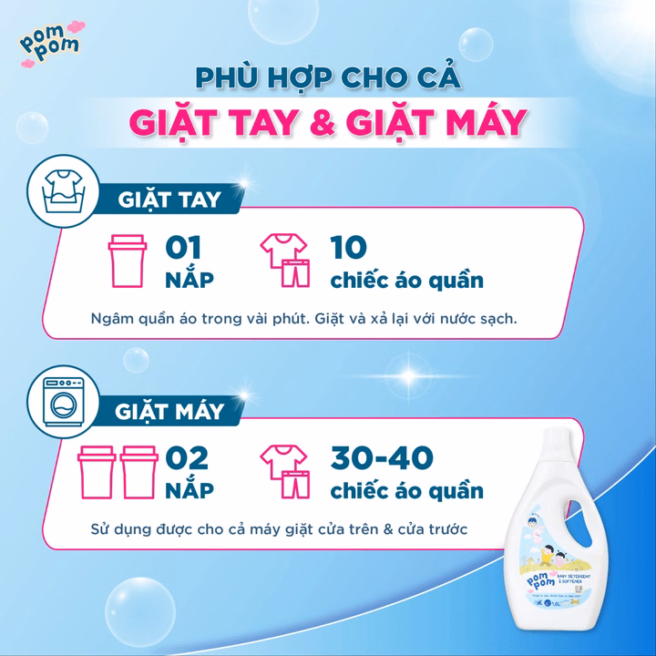 – Công thức đặt biệt Polyacrylate giúp ngăn chặn bụi bẩn quay lại, giúp quần áo bé và cả nhà luôn sạch sẽ, trắng sáng và giữ mới, giữ màu quần áo