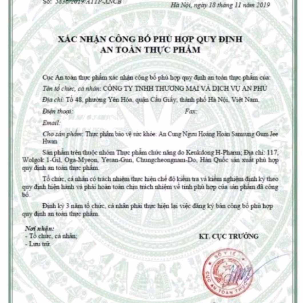 An Cung Ngưu Hoàng Samsung Gum Jee Hwan Hàn Quốc, Hộp 10 Viên