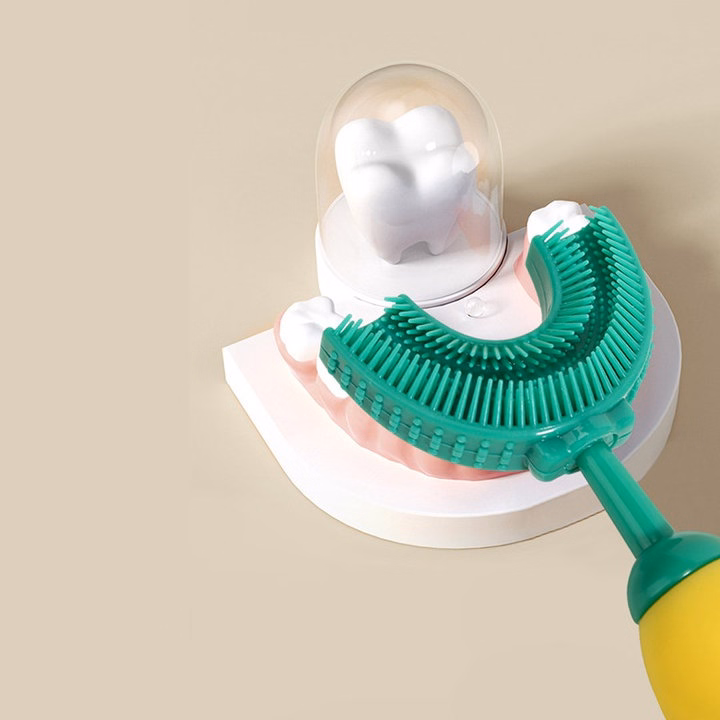 Bàn chải đánh răng chữ U là loại bàn chải đánh răng trẻ em có đầu bàn chải được thiết kế hình chữ U được làm bằng silicon siêu mềm. Do đó, bàn chải chữ U có thể len qua các kẽ răng và làm sạch răng một cách dễ dàng.