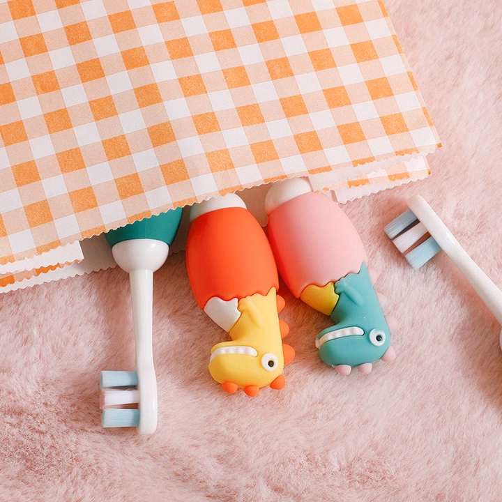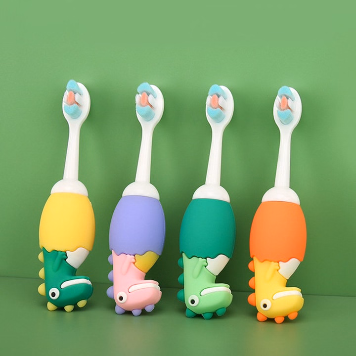 Bàn chải đánh răng trẻ em lông mềm khủng long là 1 sản phẩm hết sức thú vị khi đầu lông bàn chải là những sợi lông tơ siêu mềm giúp bé vệ sinh răng miệng sạch hơn.