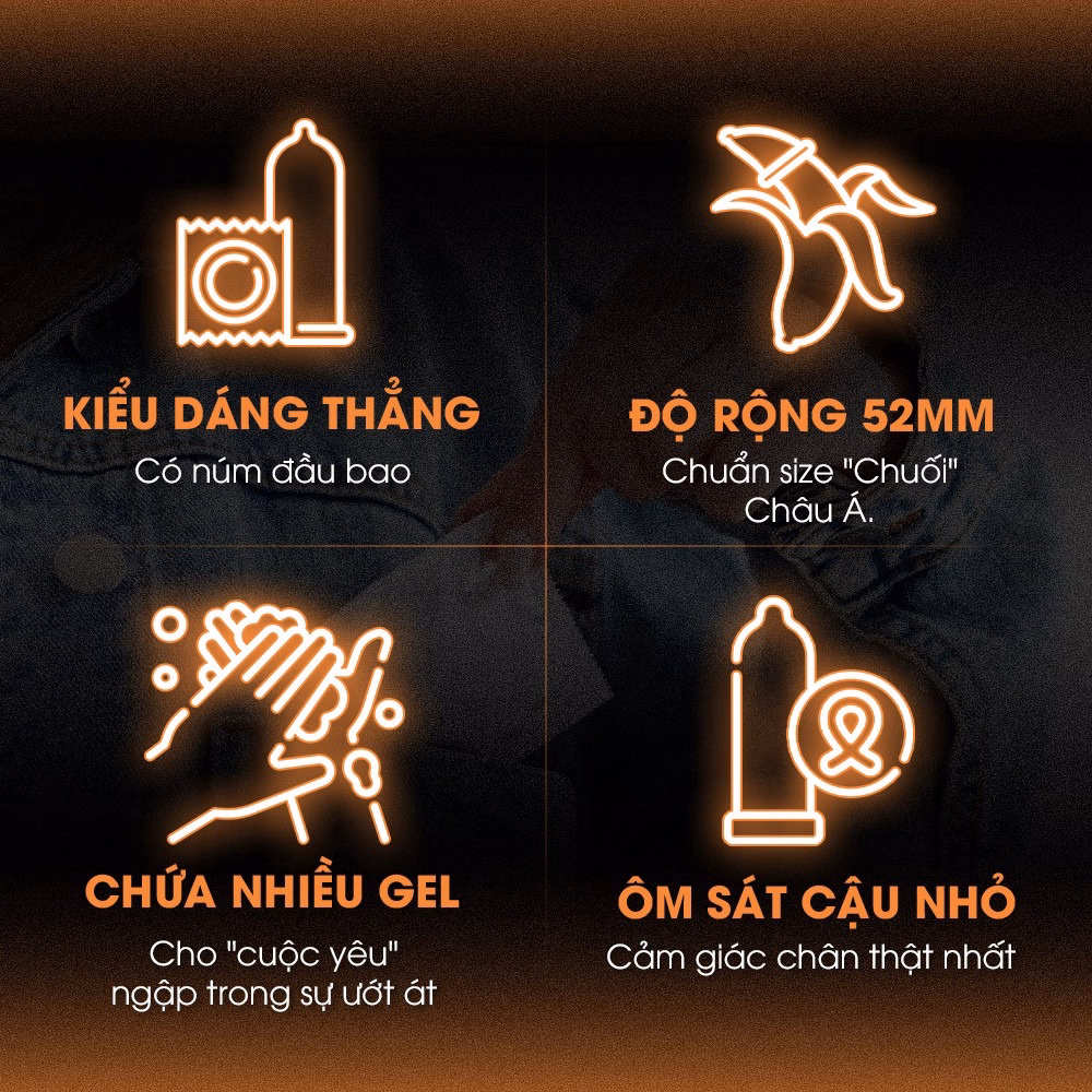 Chứa nhiều gel bôi trơn: Sản phẩm có chứa chất bôi trơn cao cấp, giúp nam giới dễ mặc đeo, tháo bao, làm cho cuộc yêu trở nên trơn tru, gia tăng khoái cảm. Hãy thoải mái rút ra rút vào, thay đổi tư thế mà không sợ bạn nữ bị khô rát.
