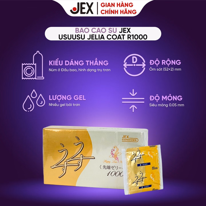 Bao Cao Su Jex – Usuusu Jelia Coat R1000 Hộp 12 Bao