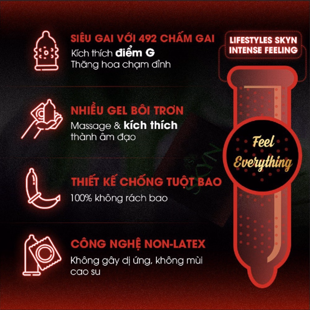 Bao Cao Su Non-Latex Siêu Gai Lượn Sóng Skyn Intense Feeling Nhiều Gel Hộp 10 Bao – Lifestyles