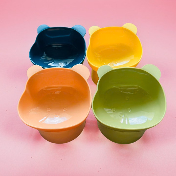 Bát Ăn Chống Gù Hình Gấu Dễ Thương Chân Cao Bằng Nhựa Cho Thú Cưng Chó Mèo