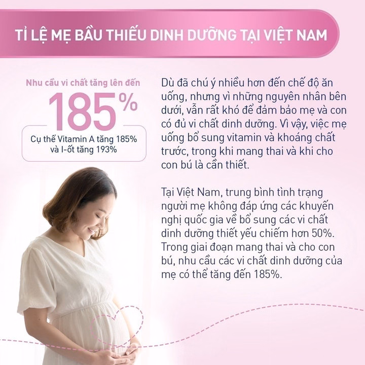 Bổ sung acid folic, sắt và các vitamin, khoáng chất cần thiết cho phụ nữ chuẩn bị mang thai, đang mang thai và cho con bú, hỗ trợ tăng cường sức khỏe, nâng cao sức đề kháng, giảm nguy cơ thiếu hụt vitamin và khoáng chất, hỗ trợ thai kỳ khỏe mạnh.