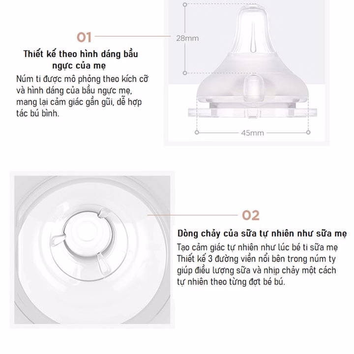 – Núm ti mềm mại giúp bé cảm giác như đang bú mẹ, rất phù hợp với những bé đang chuyển từ bú mẹ sang tập bú bình.