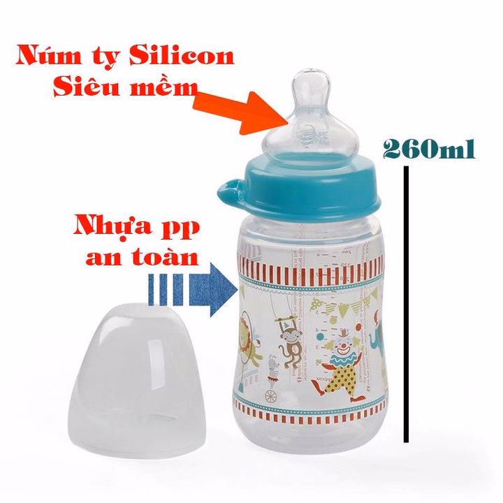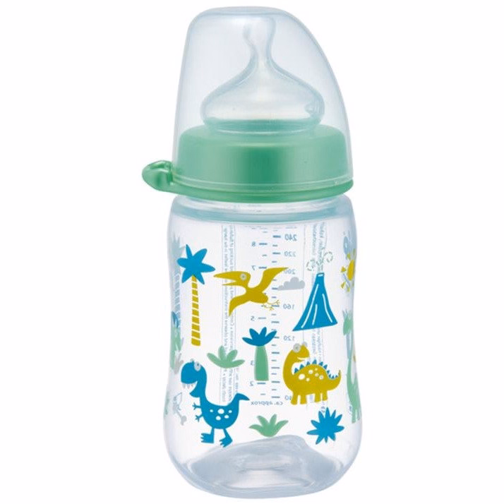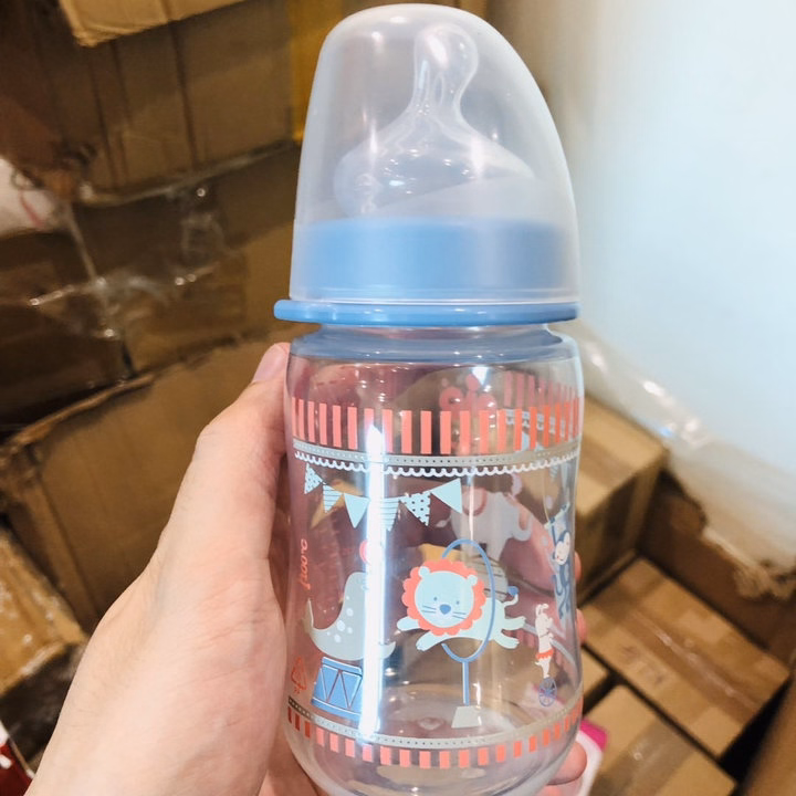 Bình sữa Nip cổ rộng nhựa Pp có dung tích 260ml, kích cỡ 0 cho bé từ sơ sinh và lỗ chảy sữa size M mang tới dòng chảy vừa