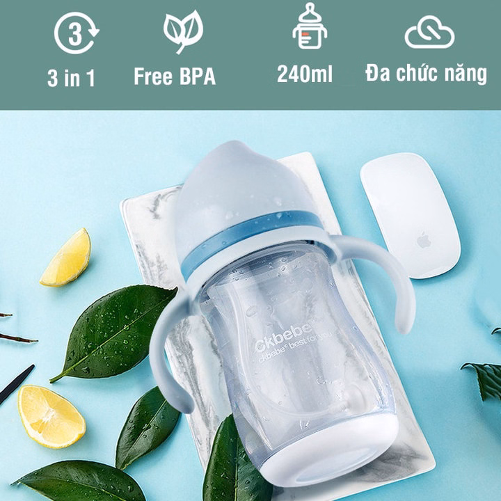 Bình uống nước có tay cầm Ckbebe dung tích 240ml có thiết kế nắp đậy và tay cầm, giúp bé giữ chặt bình trong tay không rơi rớt. Bình uống nước cho bé còn có ống hút chống sặc cho trẻ dễ dàng hơn trong việc uống nước