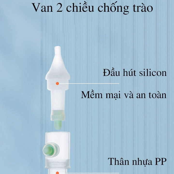 Sản phẩm có thiết kế độc đáo với ống bóp silicon hút mũi dễ dàng vào bầu chứa theo cơ chế chống trào ngược đảm bảo vệ sinh. Đầu hút đưa vào mũi bé nhỏ gọn, nhằm tránh làm tổn thương lên viêm mạc của trẻ, không gây đau. Đầu bóp rỗng, thuận tiện và dễ dàng thao tác, bạn có thể tùy chỉnh lực mạnh, yếu sao cho phù hợp với bé.