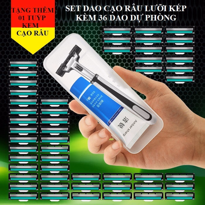 Combo 36 lưỡi dao cạo râu kép và 1 dao cạo râu – Tặng kèm tuyp kem tạo bọt
