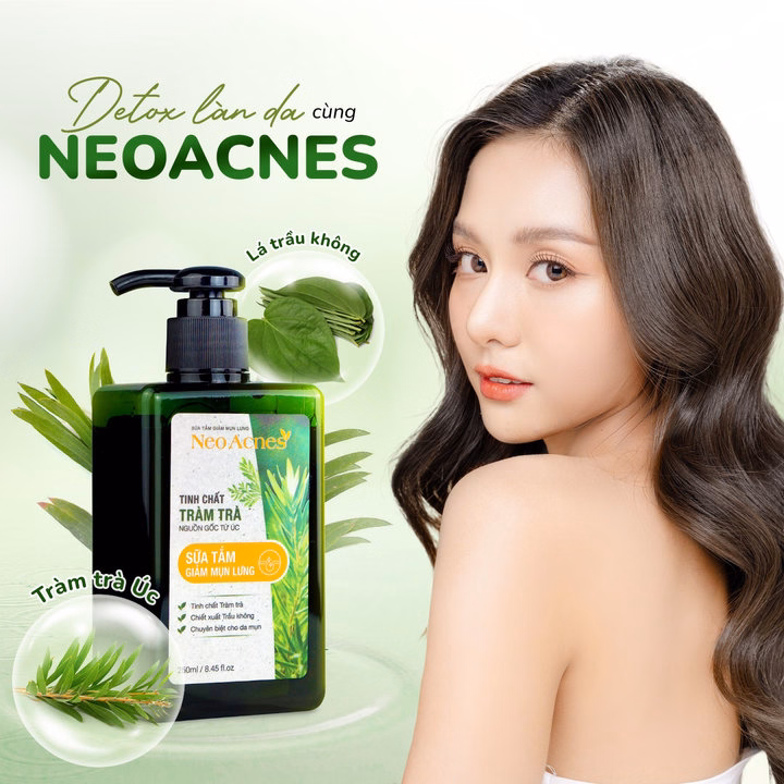 Sữa tắm mụn lưng, giảm nang lông, ngừa thâm mụn chiết xuất Tràm trà úc và trầu không Neoskin