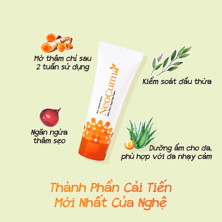 Ngày nay, với công nghệ phát triển trong quá trình sản xuất vẫn giữ được lượng Curcumin trong củ nghệ đặc biệt đã được chiết lọc tối đa tạp chất và tăng khả năng hòa tan tạo ra các phân tử siêu nhỏ (30nm – 100nm), giúp Gel nghệ nano Neocurma thẩm thấu vào sâu bên trong da, không gây vàng da hay nhờn rít, giúp giảm mụn, ngăn ngừa vết thâm sẹo sau “trận mụn”, phù hợp cho mọi loại da, cho mọi thời tiết.
