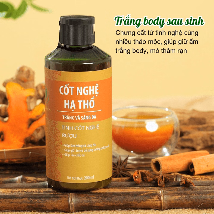 Cốt nghệ hạ thổ dưỡng trắng da toàn thân tự nhiên Wonmom gồm các thành phần: Rượu, nghệ, hoa hồng, hoa cúc, nhân sâm, bạch phục linh, bạch chỉ , hương nhu làm se lỗ chân lông, kể cả ở da nhạy cảm, giúp cân bằng chất dầu trên da nhờn, làm mềm và làm da tươi sáng.