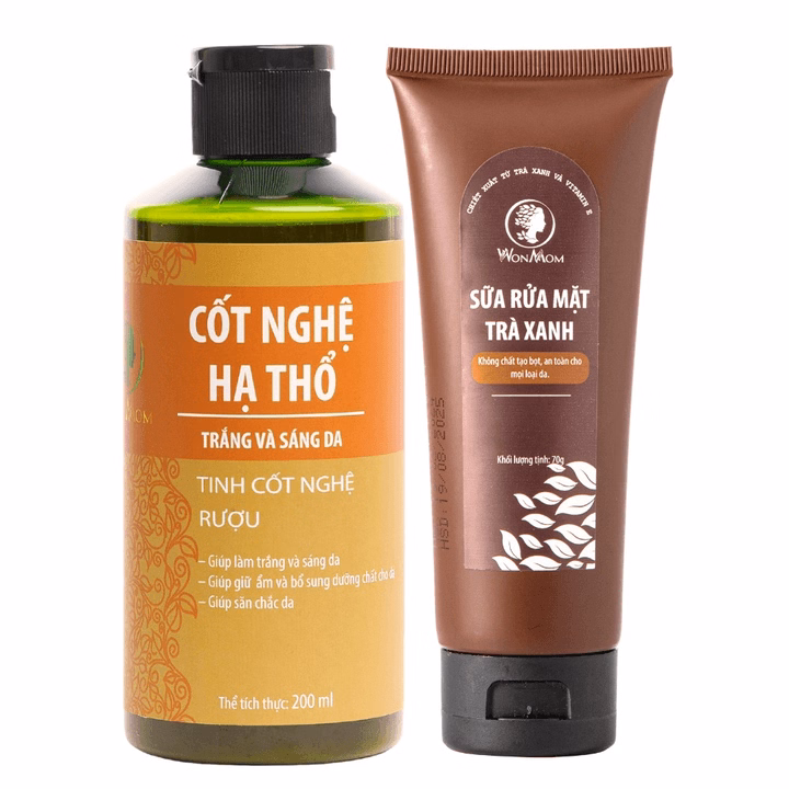 Bộ Dưỡng Trắng Mịn Da Hữu Cơ, Sáng Hồng Da Mặt, Mịn Màng Body Wonmom (1 Sữa Rửa Mặt + 1 Cốt Nghệ Hạ Thổ)