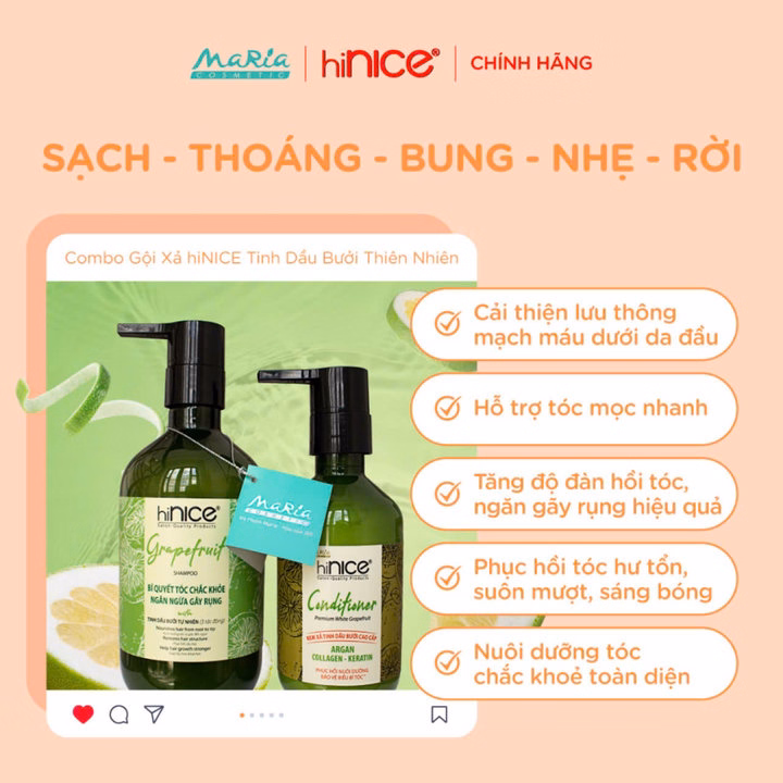 Bộ Gội Xả Tinh Dầu Bưởi Thiên Nhiên Hinice Grapefruit Dành Cho Tóc Gãy Rụng L088