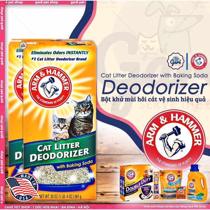 Cách sử dụng Bột Khử Mùi Hôi Trong Mọi Loại Cát Vệ Sinh Cho Mèo Chính Hãng, Khập Khẩu Từ Mỹ Arm & Hammer (567 gram/hộp):