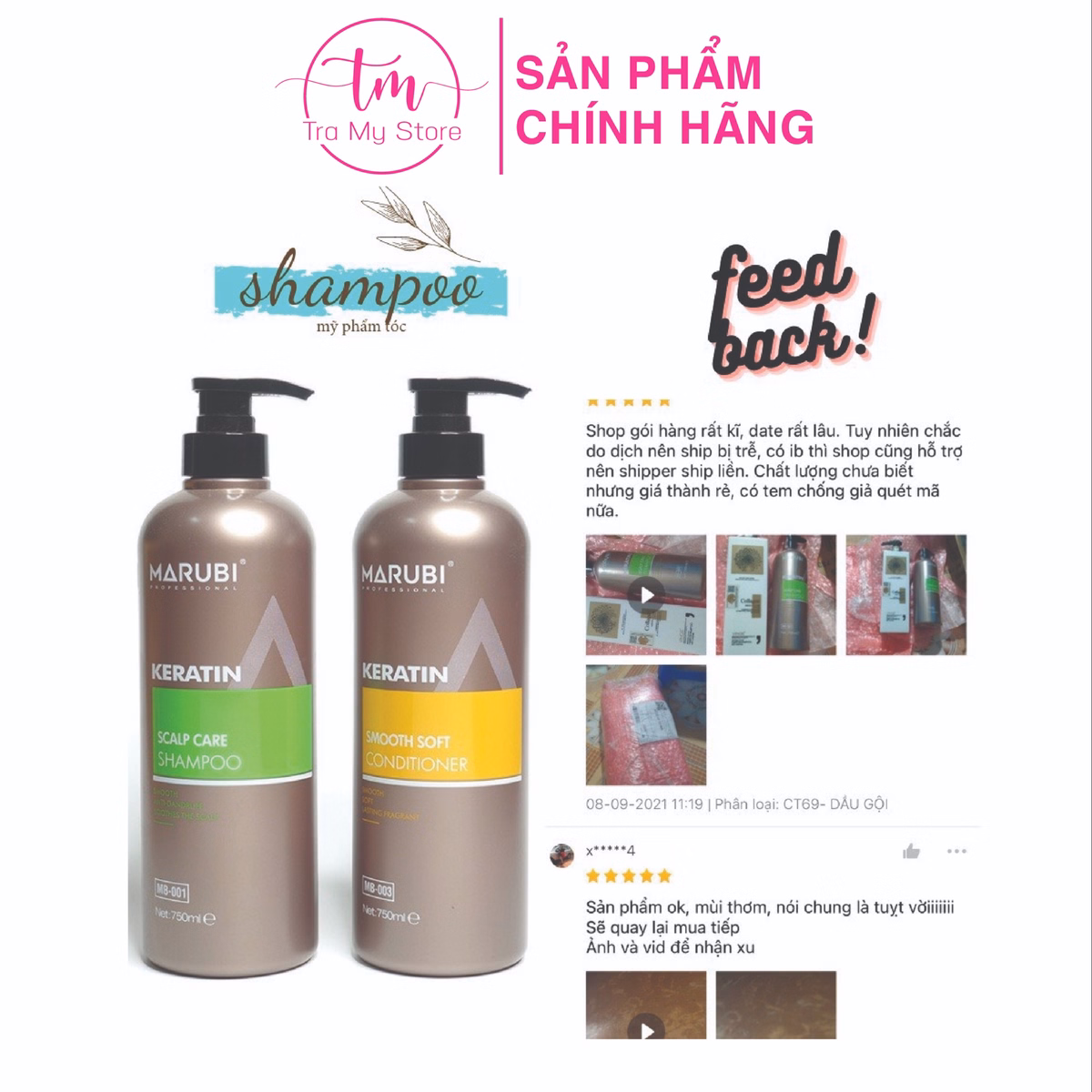 Dầu gội đầu Keratin Marubi cặp dầu gội xả phục hồi hư tổn giảm rụng tóc 750ml chính hãng
