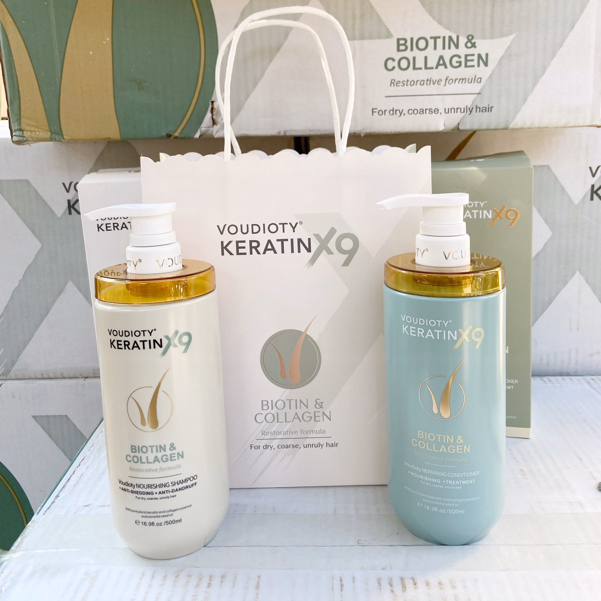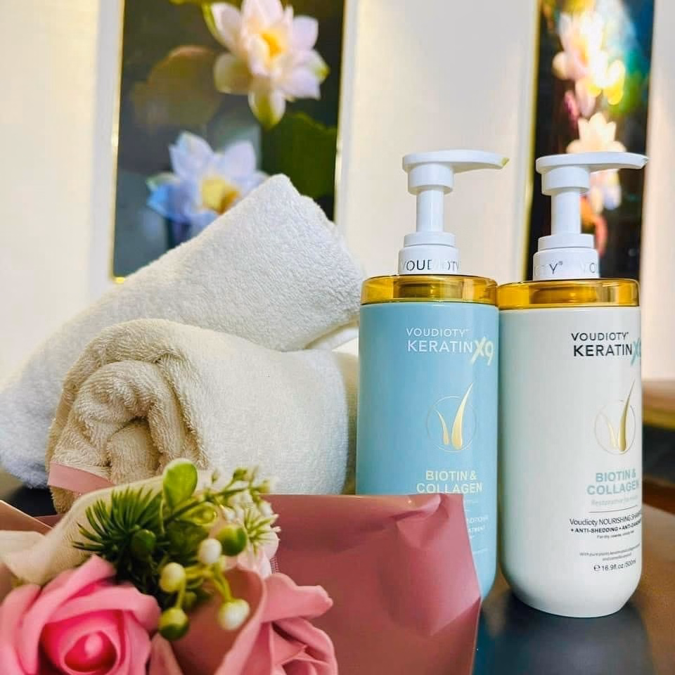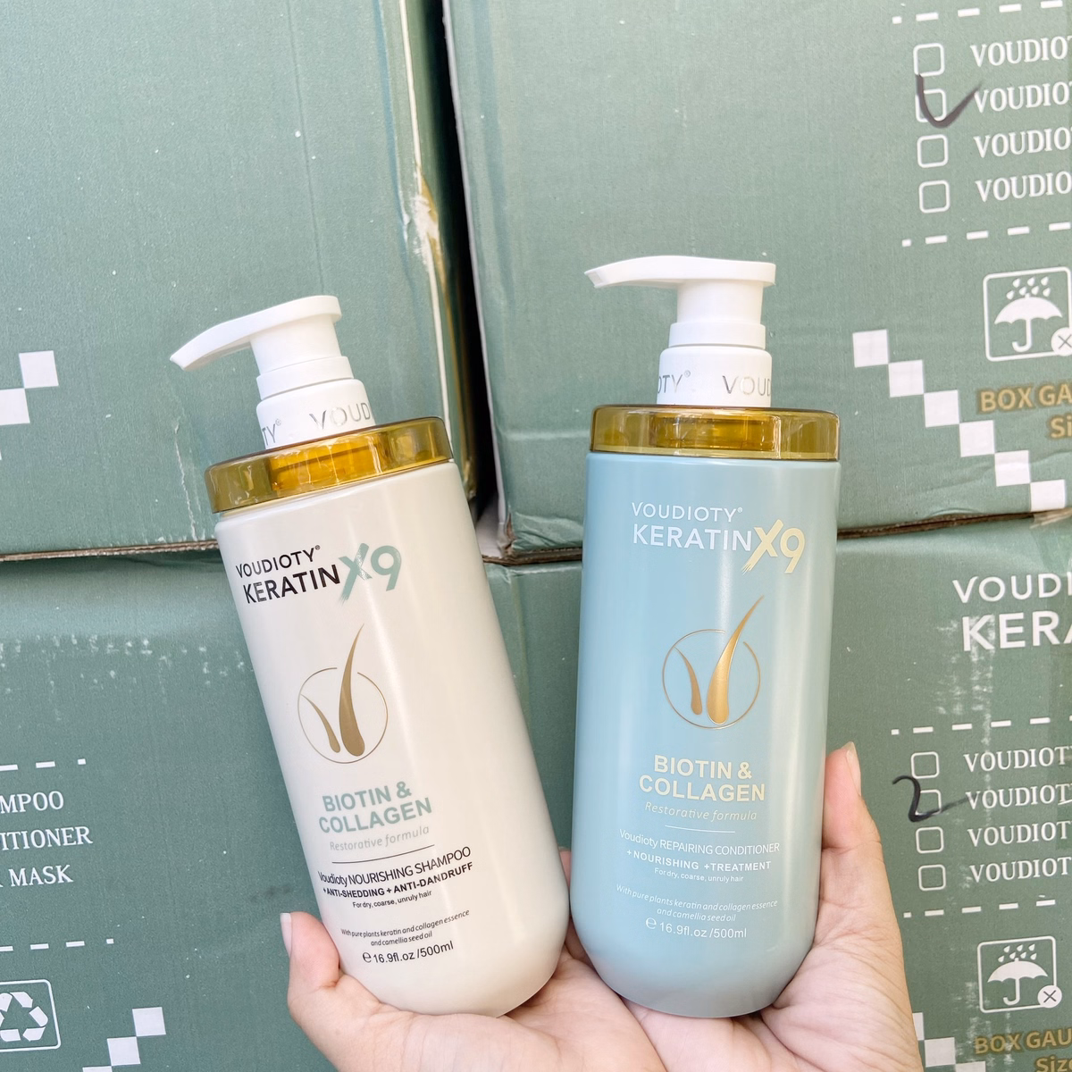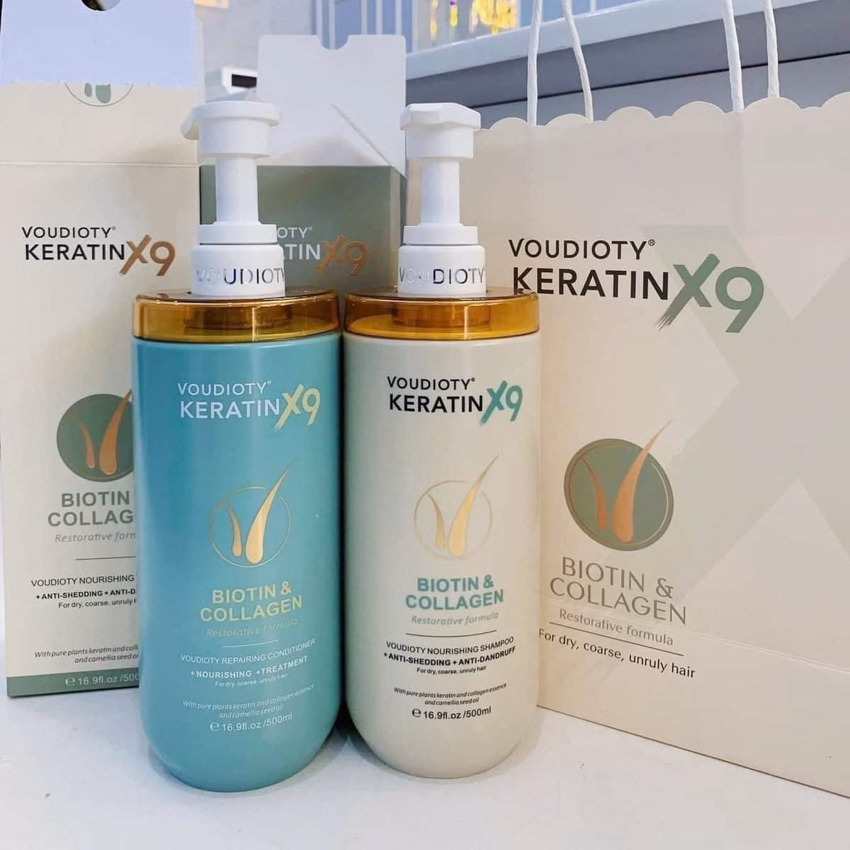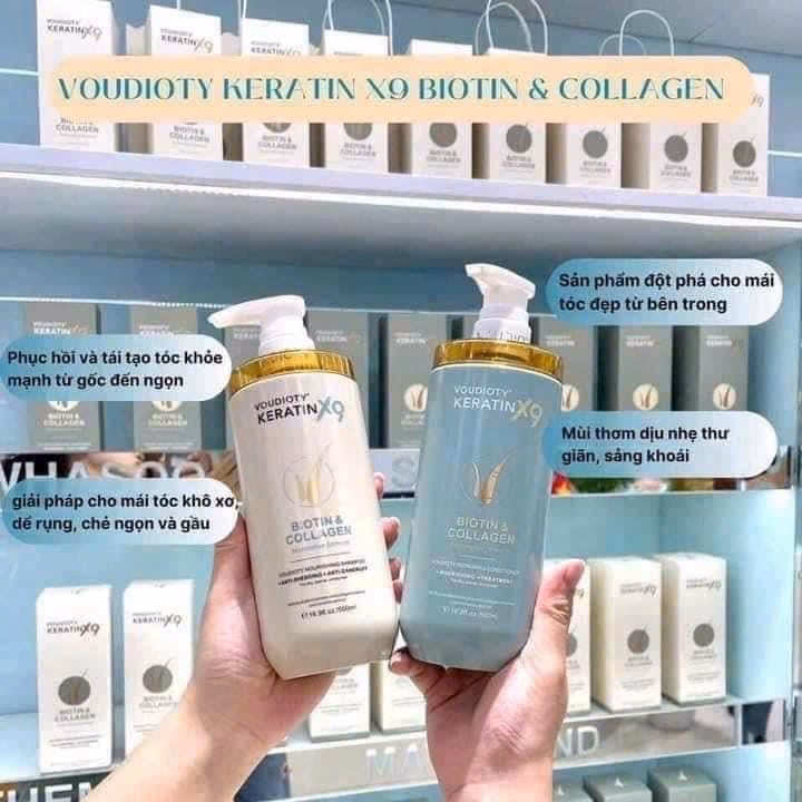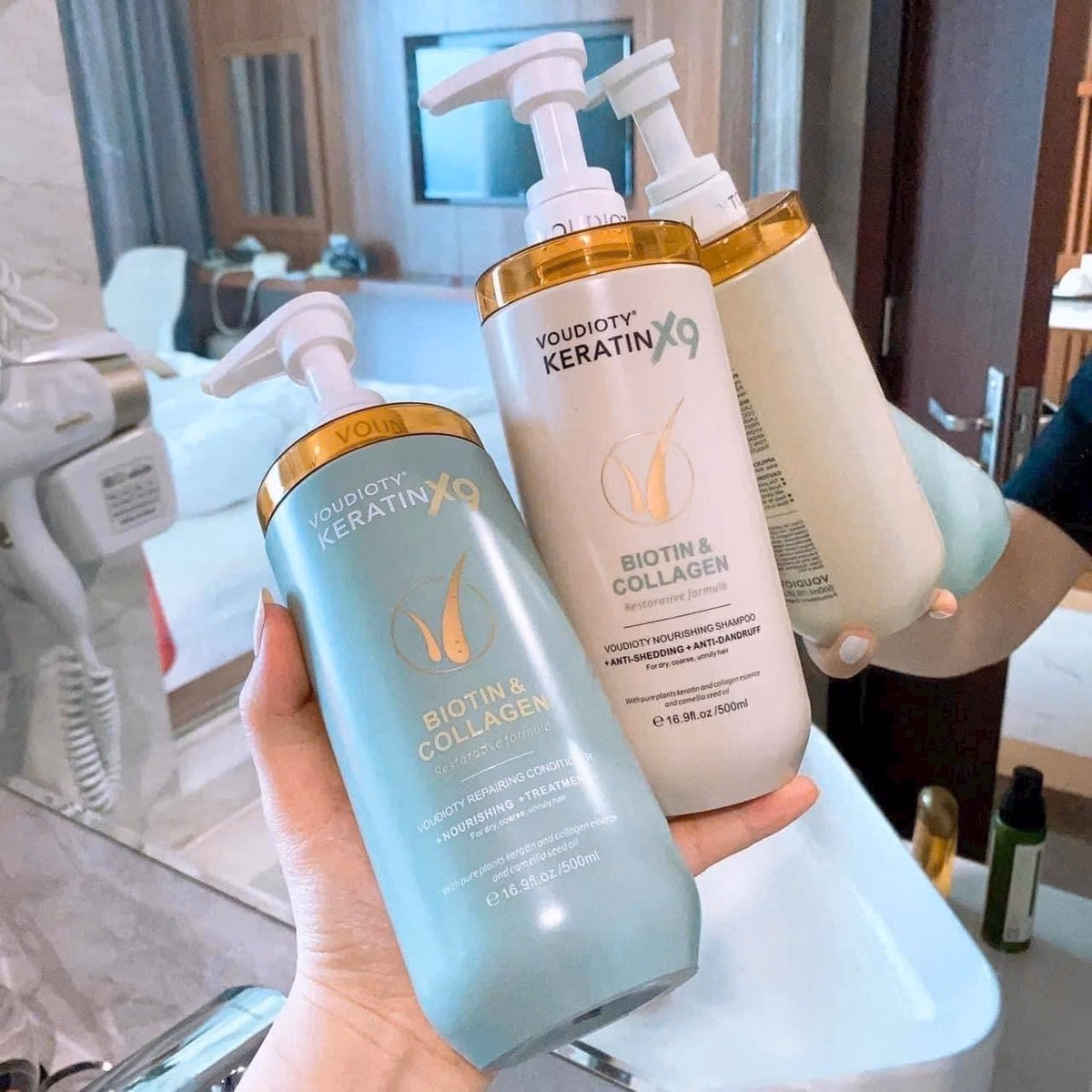 Bộ Dầu Gội Xả Biotin Collagen Voudioty Keratin x9 Chính Hãng Phục Hồi Tóc Hư Tổn