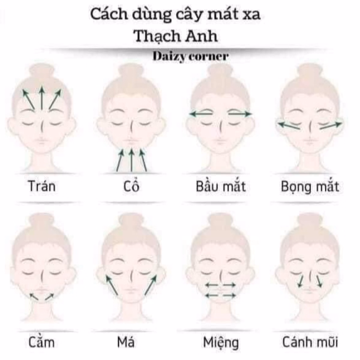 • Cây lăn massage để da và cơ mặt được thư giãn. Mạch máu dưới da sẽ tuần hoàn tốt hơn từ đó làn da được tiếp thêm sinh lực, lấy lại vẻ hồng hào, săn chắc và nâng cơ mặt.