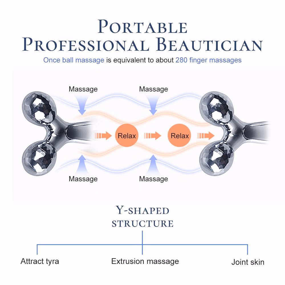 – 2 quả cầu massage được thiết kế mặt cắt giống như mặt cắt kim cương, được tráng một lớp bạch kim bóng và có thể xoay 360 độ dễ dàng matxa ôm sát các góc cạnh trên khuôn mặt