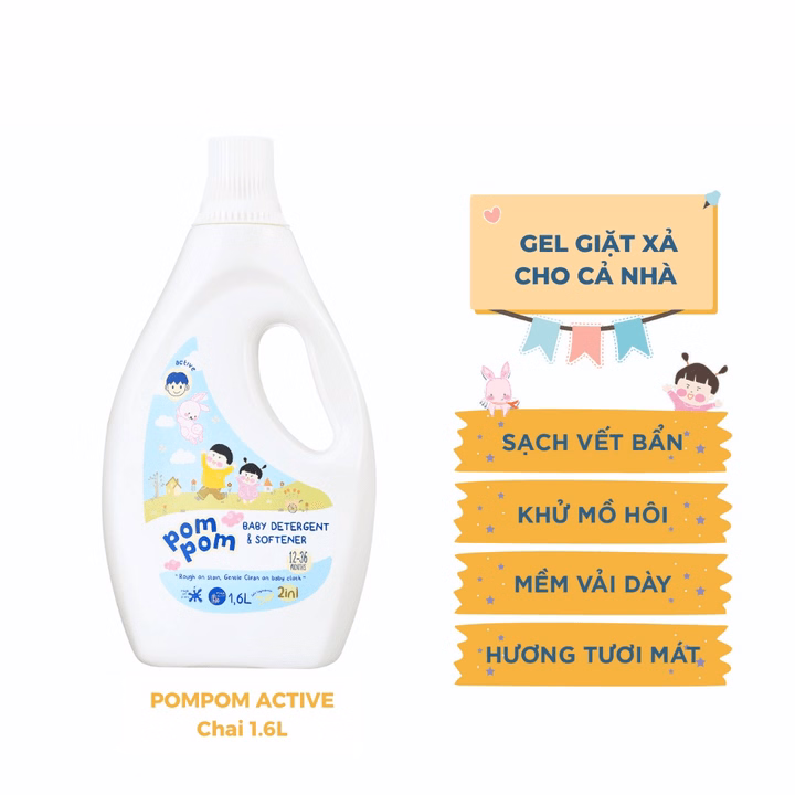 Pom Pom Active Sạch Mới, Thơm Mềm, Lưu Hương, Dưỡng Vải, Bền Màu