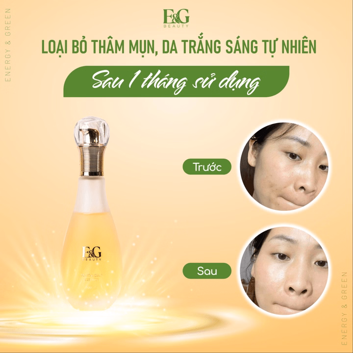 – Nước thần E&G cân bằng sắc tố da sáng đều màu, hồng hào.