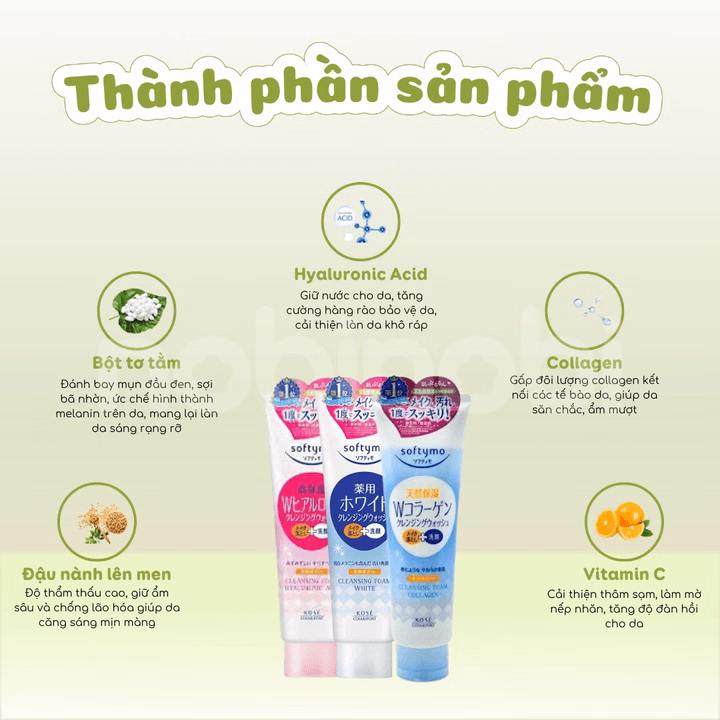 (Chính Hãng) Sữa Rửa Mặt Kose Softymo Lành Sạch, Cấp Ẩm Và Dưỡng Trắng Mịn