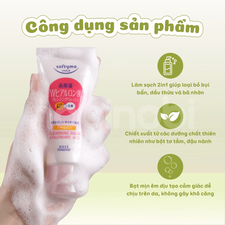 Sữa Rửa Mặt & Tẩy Trang Kosé Softymo Hyaluronic Acid: Dưỡng ẩm da