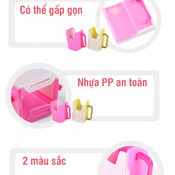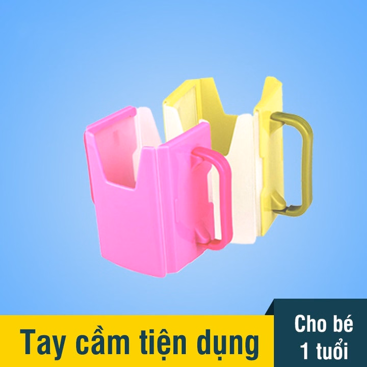 – Cốc đựng hộp sữa có tay cầm có thể điều chỉnh theo kích thước hộp sữa