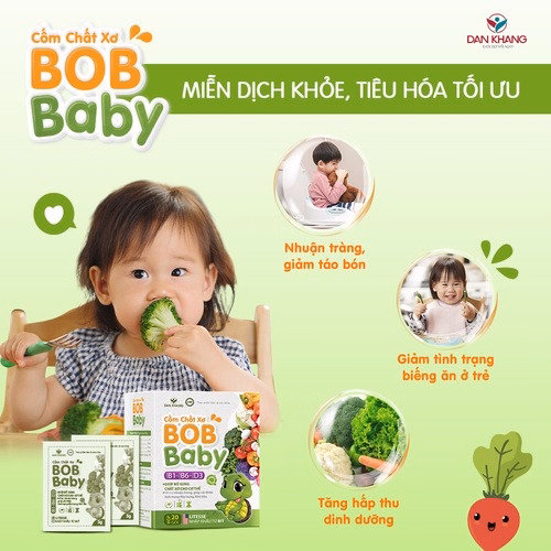 Táo bón là tình trạng thường gặp ở hầu hết các trẻ nhỏ điều này ảnh hưởng lớn đến sự phát triển của trẻ cũng như khiến trẻ mệt mỏi, chán ăn, chậm tăng cân,… 95% nguyên nhân dẫn đến táo bón là do thiếu bổ sung chất xơ trong chế độ ăn của trẻ. Nhiều mẹ bỉm sữa đã tăng cường rau xanh, củ quả cho bé thế nhưng không phải bé nào cũng thích. Chọn ngay cho bé nhà bạn cốm chất xơ Bobbaby đáp ứng đầy đủ 5 tiêu chí: An toàn, hiệu quả, tiện lợi, mùi vị thơm ngon và không gây tác dụng phụ.