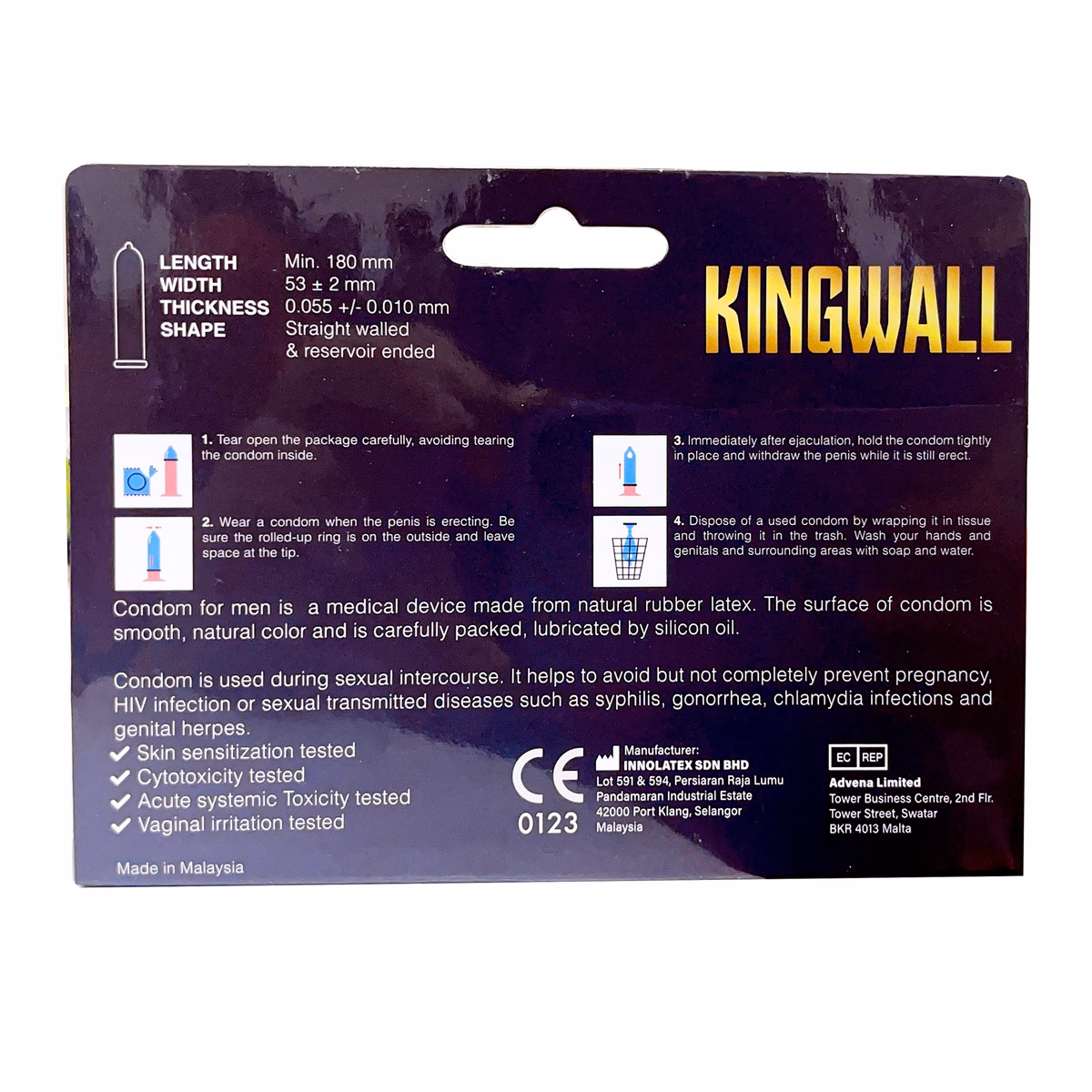 Thành phần an toàn: Bao cao su Kingwall được sản xuất hoàn toàn bằng mủ cao su thiên nhiên cao cấp với công nghệ độc quyền của Kingwall đạt tiêu chuẩn chất lượng quốc tế giúp truyền nhiệt nhanh và ôm sát, bao cao su trải qua các khâu kiểm nghiệm khắt khe nhất trước khi đến tay người sử dụng.