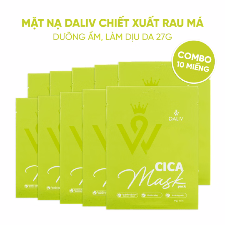 Combo 10 Tặng 2 Mặt Nạ Daliv Chiết Xuất Rau Má Dưỡng Ẩm, Làm Dịu Da 27G