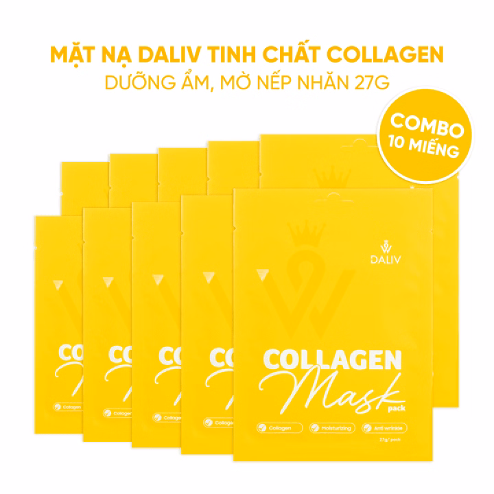 Combo 10 Tặng 2 Mặt Nạ Daliv Tinh Chất Collagen Dưỡng Ẩm, Mờ Nếp Nhăn 27G