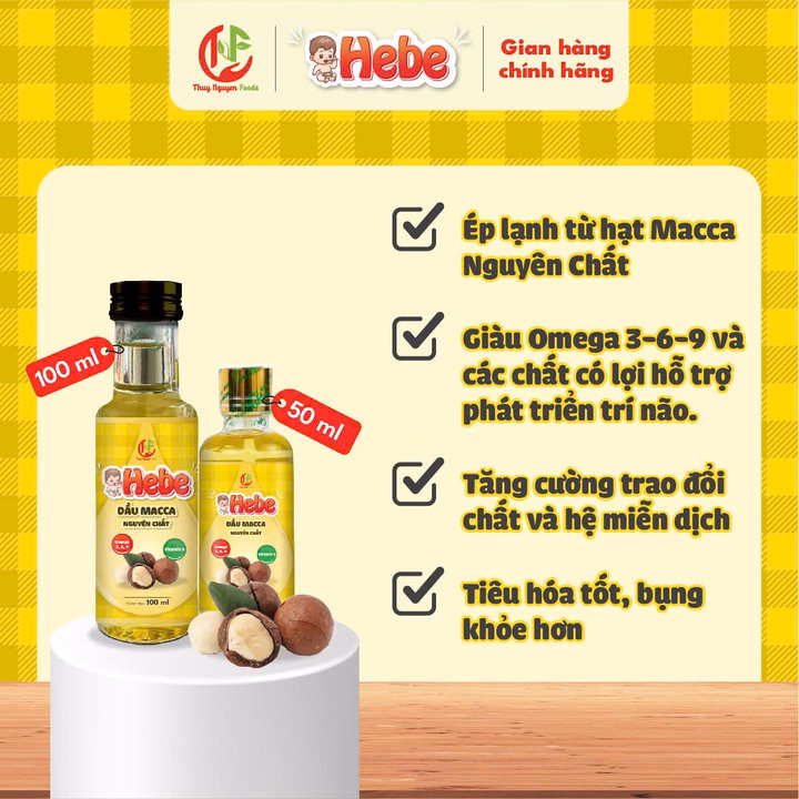 Dầu Macca Nguyên Chất Hebe cung cấp các dưỡng chất thiết yếu cần thiết tốt cho sự phát triển thể chất.