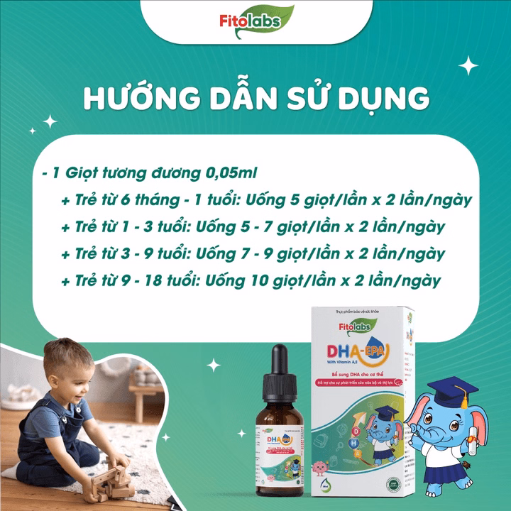 – Sản phẩm Fitolabs Dha Epa đặc biệt cần thiết cho trẻ em trong độ tuổi phát triển từ 0 – 12 tuổi
