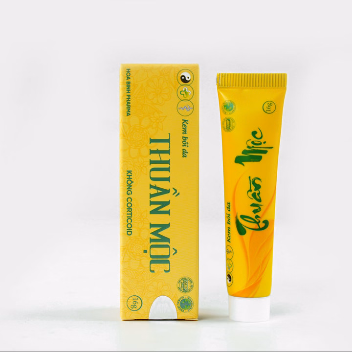 + Kem bôi da thuần mộc hoàn toàn từ thảo dược thiên nhiên như Hoàng bá, đại phù hình, thảo quyết minh, long não, ké đầu ngựa, kim ngân hoa.