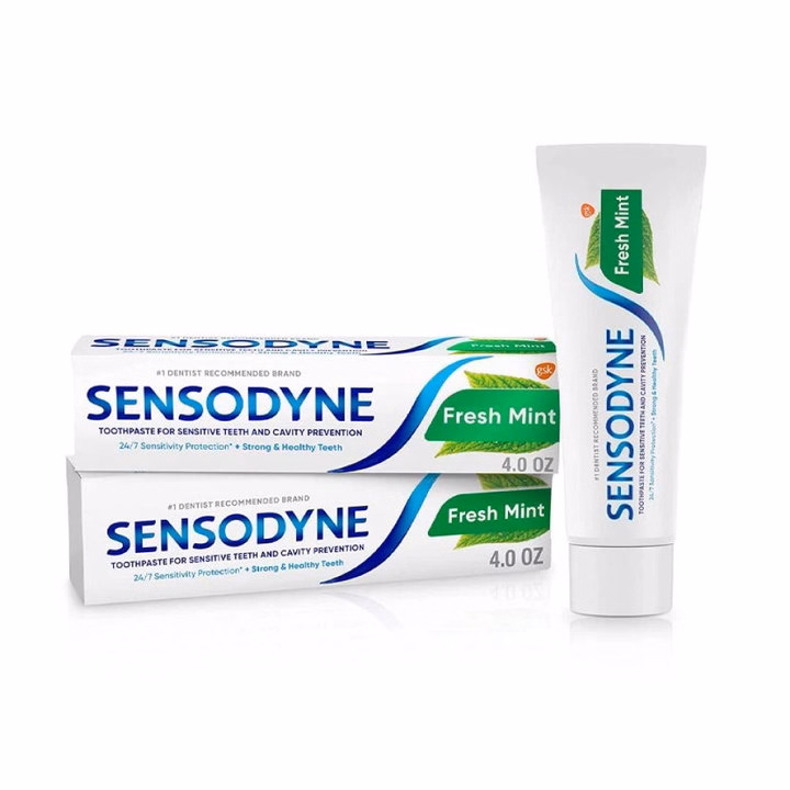 Kem đánh răng Sensodyne Fresh Mint hỗ trợ làm dịu cảm giác ê buốt và bảo vệ răng khỏi hiện tượng ê buốt, ngăn ngừa tình trạng mảng bám và sâu răng, có hương bạc hà tươi mới giữ cho khoang miệng luôn sạch sẽ và thơm mát.