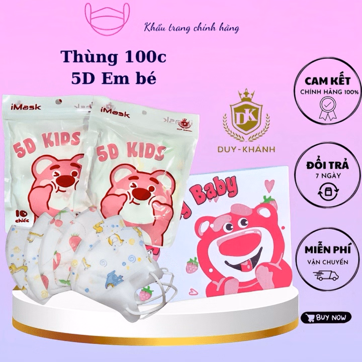 * Cam Kết: Khẩu trang 5D Mask cho bé được sản xuất đạt Tiêu Chuẩn Iso được Bộ Y tế công nhận và cấp phép lưu hành.