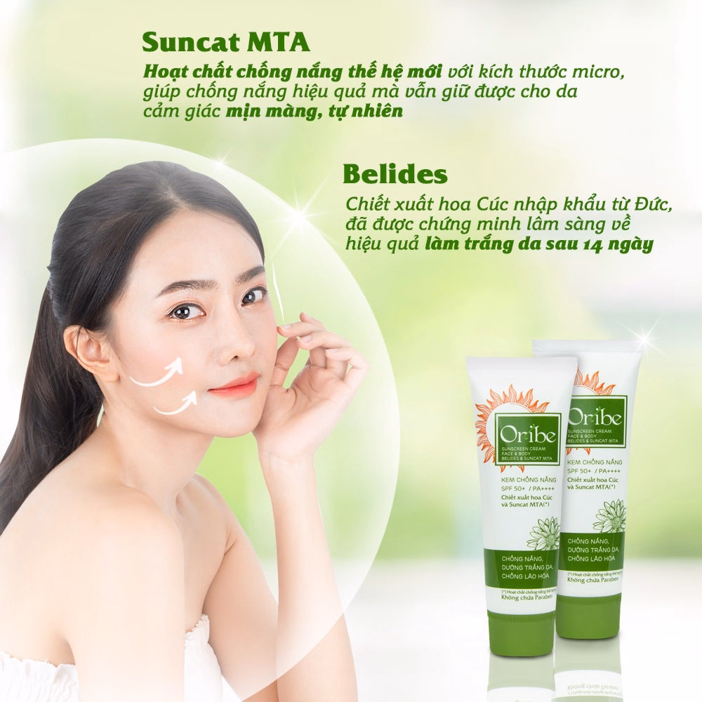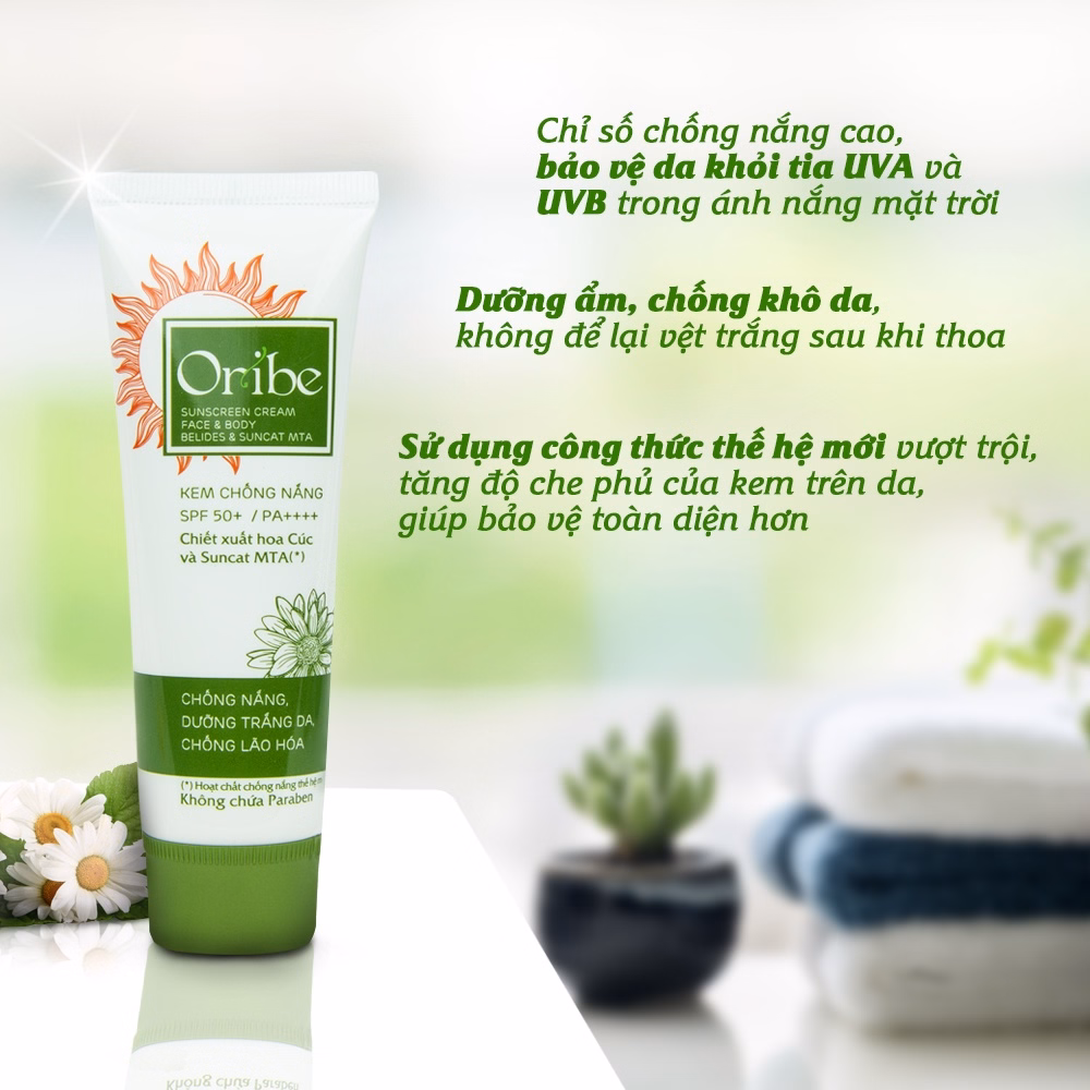 Sử dụng hoạt chất chống nắng thế hệ mới Suncat Mta kích thước micro tạo ra lớp màng chắn an toàn trên da, kết hợp với chiết xuất hoa Cúc giúp dưỡng ẩm, làm trắng da, Kem Chống Nắng Oribe Spf50+ Pa+++ giúp bảo vệ làn da bạn khỏi tác hại của tia Uva/Uvb từ ánh sáng mặt trời, đồng thời giúp da luôn sáng khỏe, mịn màng, ẩm mượt thật tự nhiên!