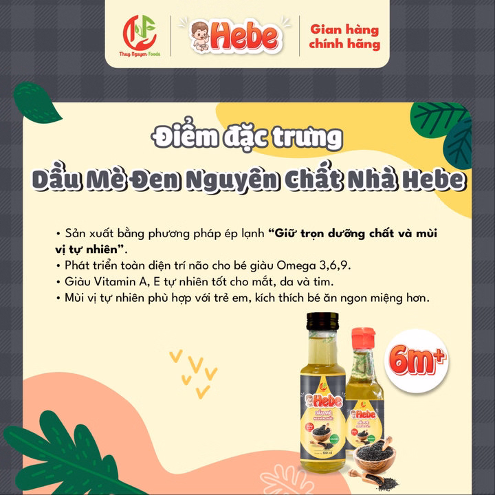 -Dầu Mè Nguyên Chất Hebe được ép lạnh từ 100% hạt mè đen tuyển chọn mang đến các