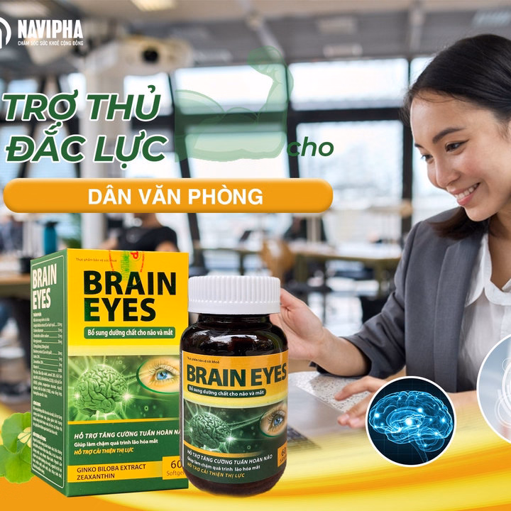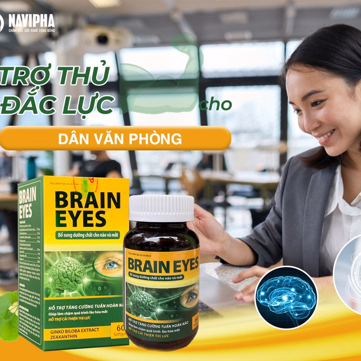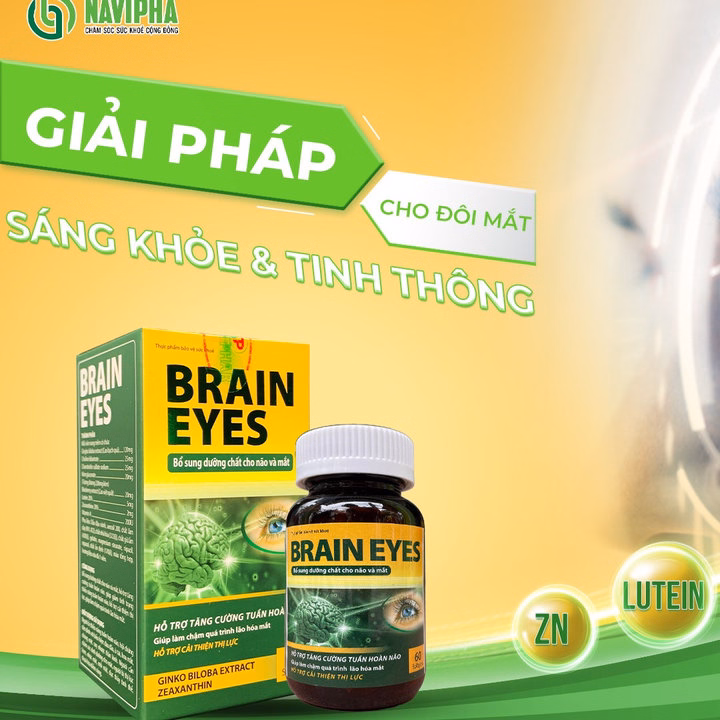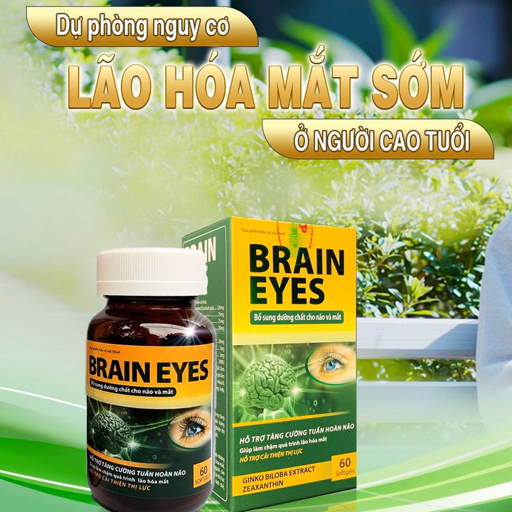 Brain Eyes được chiết xuất từ cao chế từ lá cây bạch quả (ginkgo biloba) đã được tiêu chuẩn hóa, Extract of Ginkgo biloba kết hợp Choline bitartrate và các thành phần khác bổ trợ cho não, mắt cải thiện thị lực.