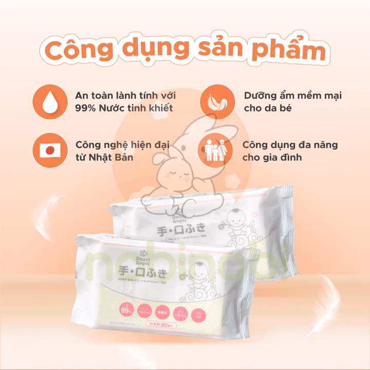 Khăn Ướt Smartangel đến từ tập đoàn Nishimatsuya Nhật Bản là sản phẩm lý tưởng cho bé với 99% nước tinh khiết, không cồn, không paraben, không hương liệu, phù hợp với mọi loại da. Sản phẩm được sản phẩm tại Nhật Bản với công nghệ hiện đại, đảm bảo chất lượng cao.