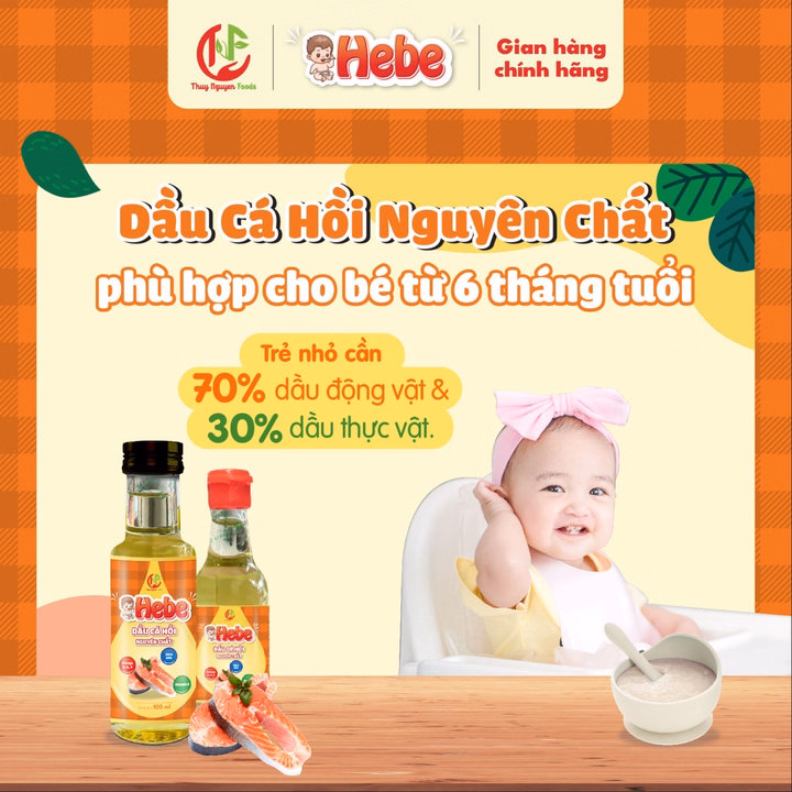 -Dầu Cá Hồi Nguyên Chất Hebe là dầu cá giàu các dinh dưỡng Omega 3, Omega 6, Epa và Dha…Epa & Dha có vai trò quan trong trong việc phát triển trí não cho trẻ, tăng nồng độ