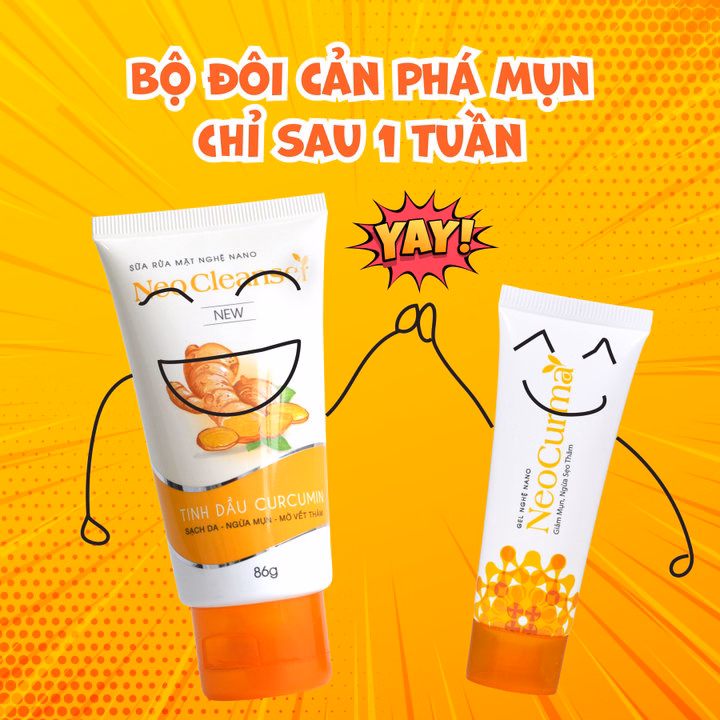Với công nghệ phát triển loại bỏ tạp chất trong củ Nghệ và vẫn giữ được lượng Curcumin giá trị dưới dạng các phân tử siêu nhỏ, giúp Neoskin tạo nên combo dưỡng da mụn Sữa rửa mặt và Gel chấm mụn Nano nghệ làm sạch, khô nốt mụn, ngừa mụn thâm hiệu quả.