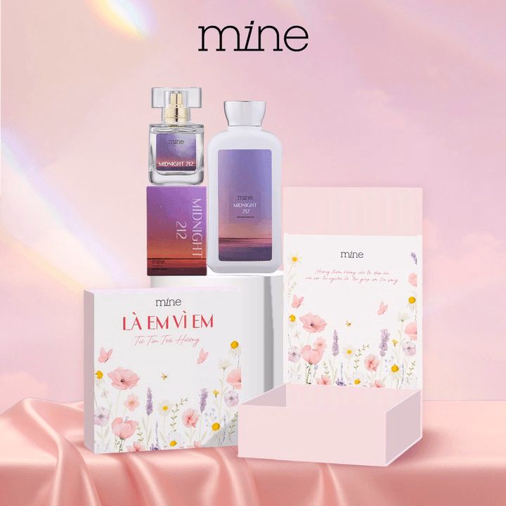 1. Tên sản phẩm: Hộp quà tặng Mine Sữa tắm & Nước hoa Midnight