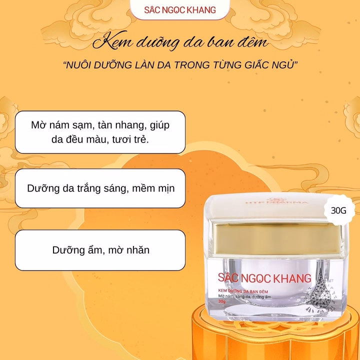 – Kem đêm 30g: Nuôi dưỡng và phục hồi da chuyên sâu, mờ nám sạm, làm đều màu da, dưỡng ẩm mượt mà.