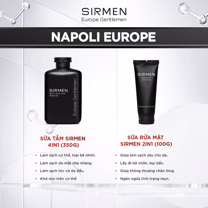 Combo Napoli Europe Gồm Sữa Tắm Gội Nam 4 In 1 Và Sữa Rửa Mặt Nam 2 In 1 – Sirmen