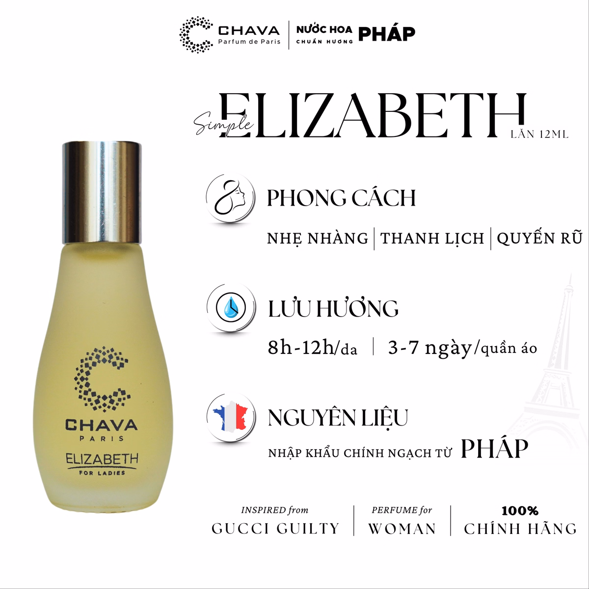 Chava Elizabeth: Phù hợp những cô gái nhẹ nhàng, quyến rũ, thanh lịch, cuốn hút, nữ tính, sexy.